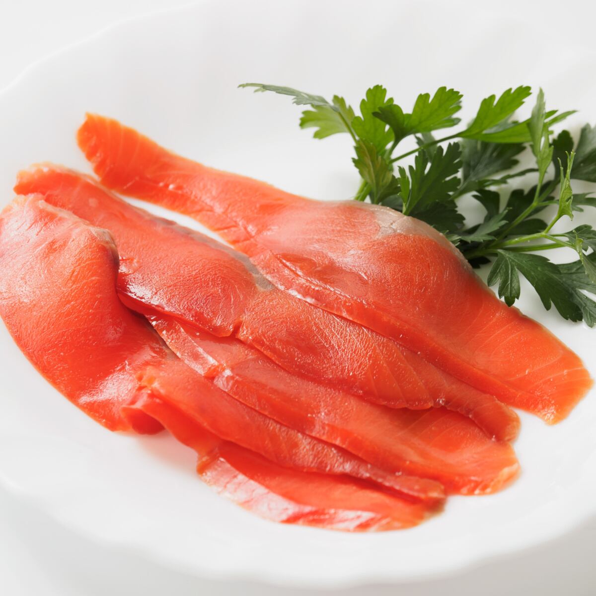 均一な厚みにスライスすることで、口に入れた瞬間のとろけるような食感と、紅鮭の持つ繊細な旨味が最も際立つよう仕上げております。お皿に並べた際の凛とした佇まい、そして透き通るような真紅の美しさは、正規スライスならではの魅力です。
